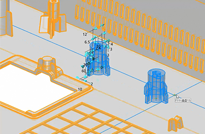支持智能配对公母唇缘、卡扣卡槽命令,提供12种标准螺丝柱类型,化繁为简,提升塑胶设计效率。