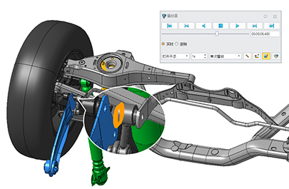 持对零件或装配对象进行运动仿真模拟,提供干涉、运动轨迹、动画测量等分析功能,并支持
